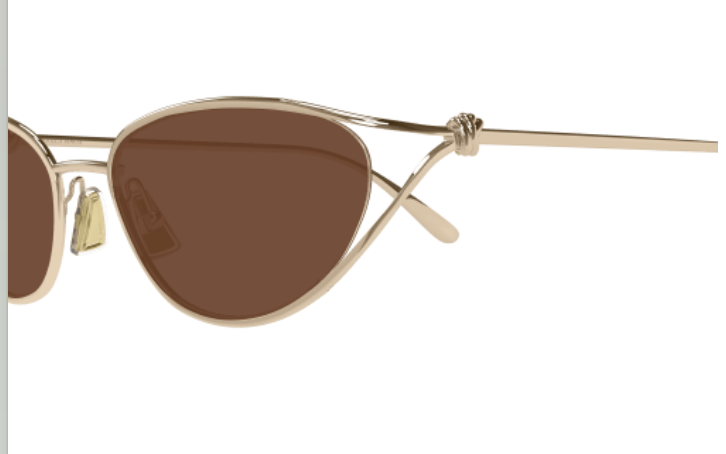 Monture œil-de-chat souple de la famille Knot. Ce modèle présente le double nœud emblématique de Bottega Veneta pour créer une monture à fourche magnifiquement conçue. La branche 100 % métal présente un pli au milieu pour imiter les deux bandes du nœud et la pointe est gravée au laser avec le logo Bottega Veneta.