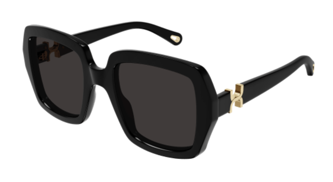 Une exécution combinée féminine surdimensionnée avec la signature emblématique de Marcie. Devant en métal et branches en acétate combinés par la charnière Marcie. La pointe de la timpe présente l’emblématique détail en forme de larme en métal Chloé Eyewear