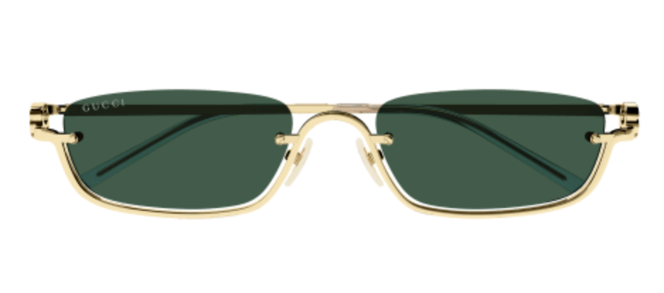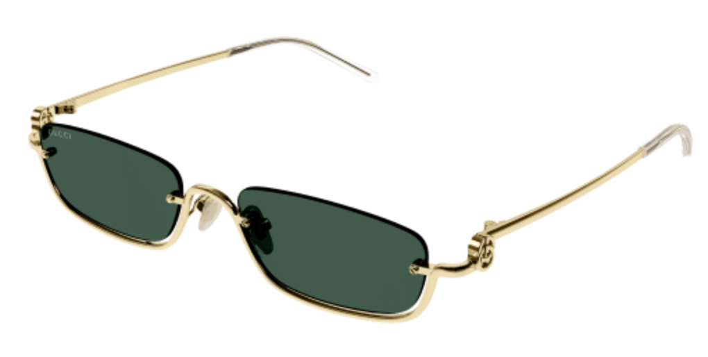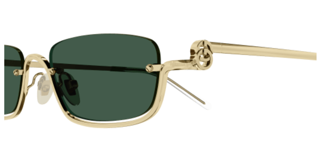 Monture rectangulaire très étroite. Monture demi-cerclée. Logo lettres GG entrelacées inversé sur les deux branches.